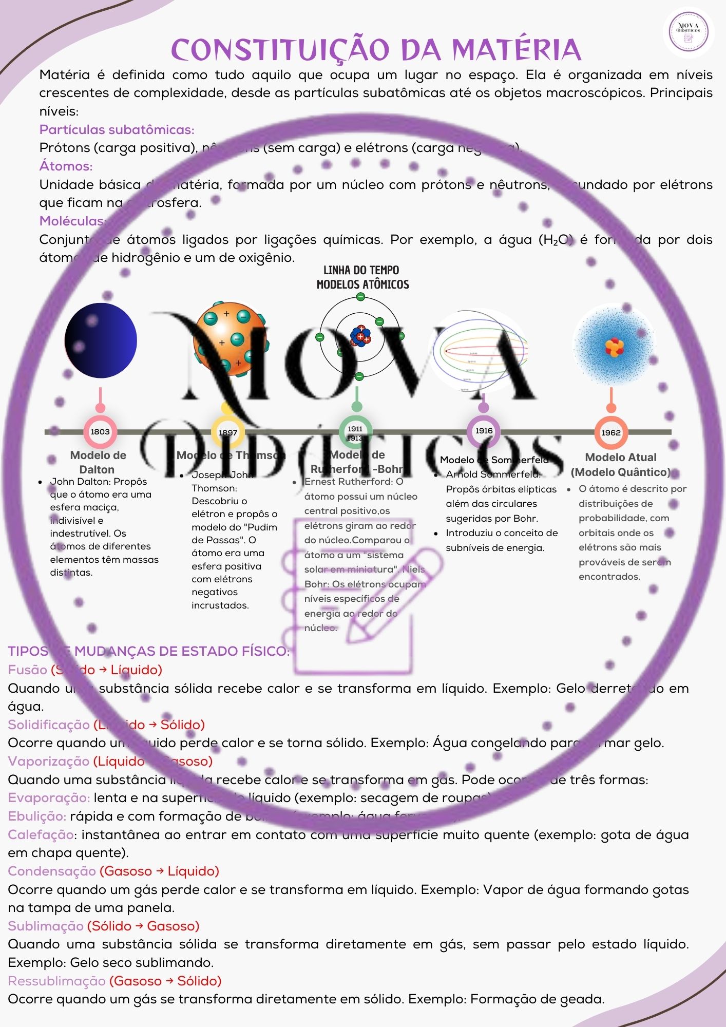 - Resumo do conteúdo com a linha do Tempo dos modelos atômicos;